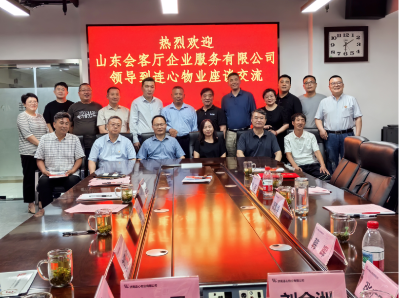 2025年7月26日,山東企業(yè)家會客廳企業(yè)服務(wù)有限公司創(chuàng)始人徐河等企業(yè)家一行19人到連心物業(yè)參觀交流。連心物業(yè)黨支部書記、董事長王宏勇,黨支部副書記、總經(jīng)理曹立等公司高層領(lǐng)導熱情接待,雙方圍繞企業(yè)創(chuàng)新發(fā)展、資源融合等議題展開深入探討,共話合作新機遇。