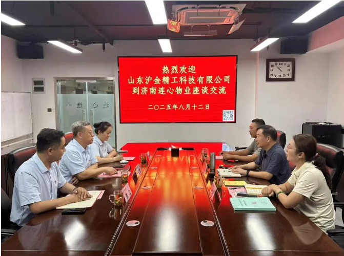 2025 年8月12日上午,山東滬金精工科技股份有限公司董事長孟繼云,黨支部書記、人事行政經(jīng)理賈文杰等到濟南連心物業(yè)進行工作互動交流。連心物業(yè)黨支部書記、董事長王宏勇,黨支部副書記、總經(jīng)理曹立、辦公室主任孫耀先等參加此次工作交流接待活動。
