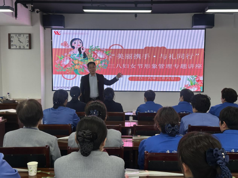 春風(fēng)送暖,萬象更新。在第116個“三八”國際勞動?jì)D女節(jié)來臨之際,為豐富女職工精神文化生活,提升個人綜合素養(yǎng)與職業(yè)形象,2026年3月6日下午,濟(jì)南連心物業(yè)有限公司工會、婦委會在1701會議室舉辦“美麗攜手·與禮同行”三八婦女節(jié)女職工形象管理專題講座。公司50名女職工代表參加此次活動。