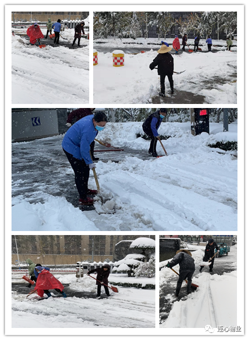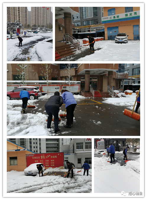 雨雪交加的天氣并不能打消連心人工作的熱情,公司上下無論什么崗位、什么工種都揮舞著鐵锨、掃帚投入到了掃雪工作中,成為一道道亮麗的風景線。大家團結(jié)協(xié)作,很快使道路恢復了正常通行,為業(yè)主的正常工作和生活帶來了便利。